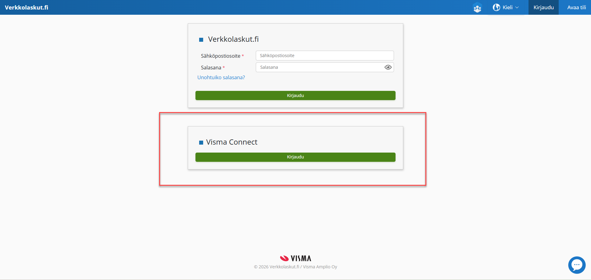 Verkkolaskut.fi- palvelu tarjoaa käyttöön turvallisen Visma Connect kirjautumisen, joka mahdollistaa myös 2-vaiheisen tunnistautumisen. Käyttöönoton jälkeen saat aktivoitua 2-vaiheisen tunnistautumisen näiden ohjeiden mukaisesti: